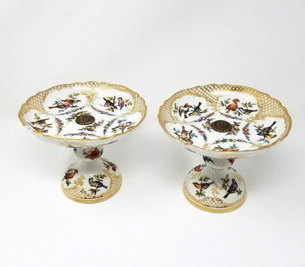 Pair Bird Compotes in the Royal Porcelain Berlin Style Vintage