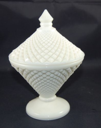 Title (ebay affiliate link): Westmoreland English Hobnail Milk Glass White Covered Candy Cone Dish Bowl