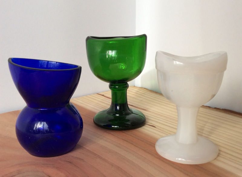 Title (ebay affiliate link): Lot of 3 Vintage Eye Wash Cups - White Milk Glass, Green & Colbalt