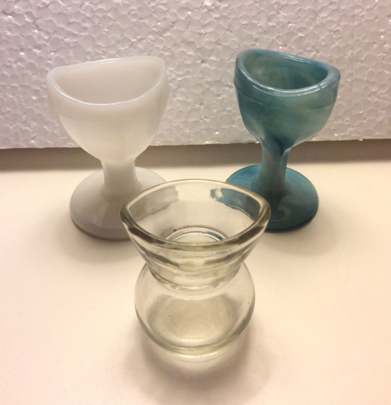 Lot of 3 Vintage Eye Wash Cups - White Milk Glass, Clear and Blue Swirl