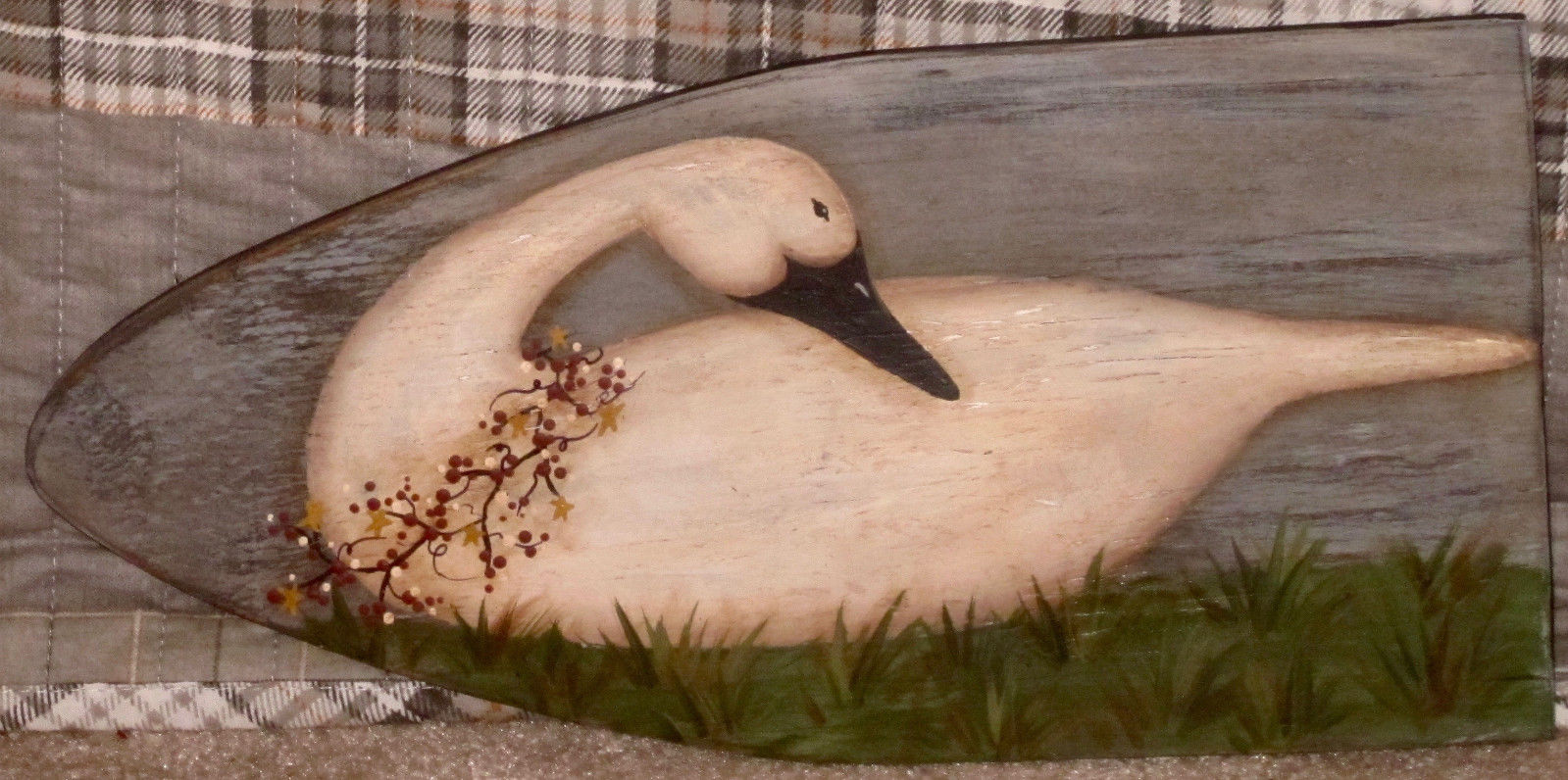 Title (ebay affiliate link): *~*PRIMITIVE*~* HP FOLK ART PRIM WHITE SWAN *~* BERRIES & STARS *~* STRETCHER