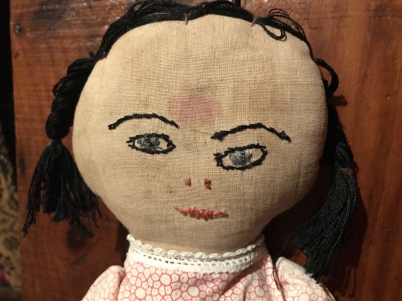 Title (ebay affiliate link): Antique Primitive Folk Art Hand StitchHomespun Lace Cloth Hair Rag Doll AAFA