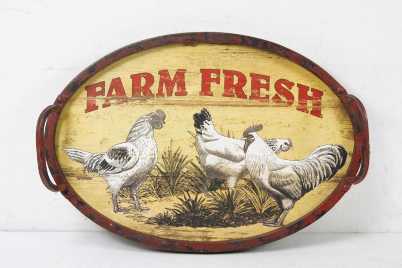 Title (ebay affiliate link): Primitive Country Farm Fresh Rooster Wood & Metal Handled Tray