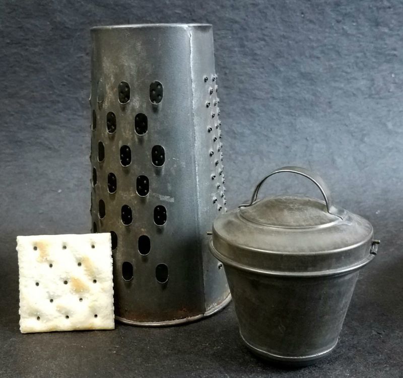 Vintage WILLOW TIN GRATER + Bucket PUDDING MOLD w Bayonet Closure, Twist & Pull