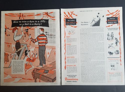 Title (ebay affiliate link): 1959 Dennison crepe paper how to trim a gym in a jiffy vintage School decor ad
