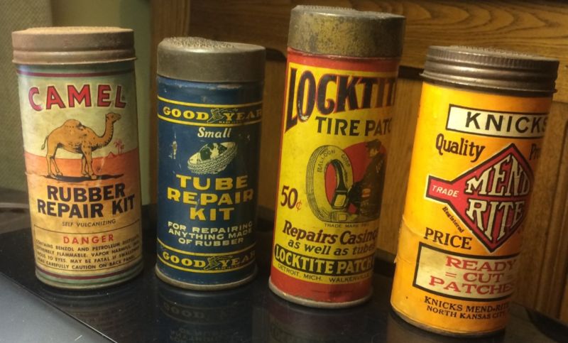Title (ebay affiliate link): Lot-Four Repair Kits-Vintage-Camel-Knicks-Goodyear-Locktite-With Contents