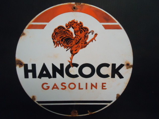 VINTAGE HANCOCK GASOLINE PORCELAIN GAS PUMP SIGN