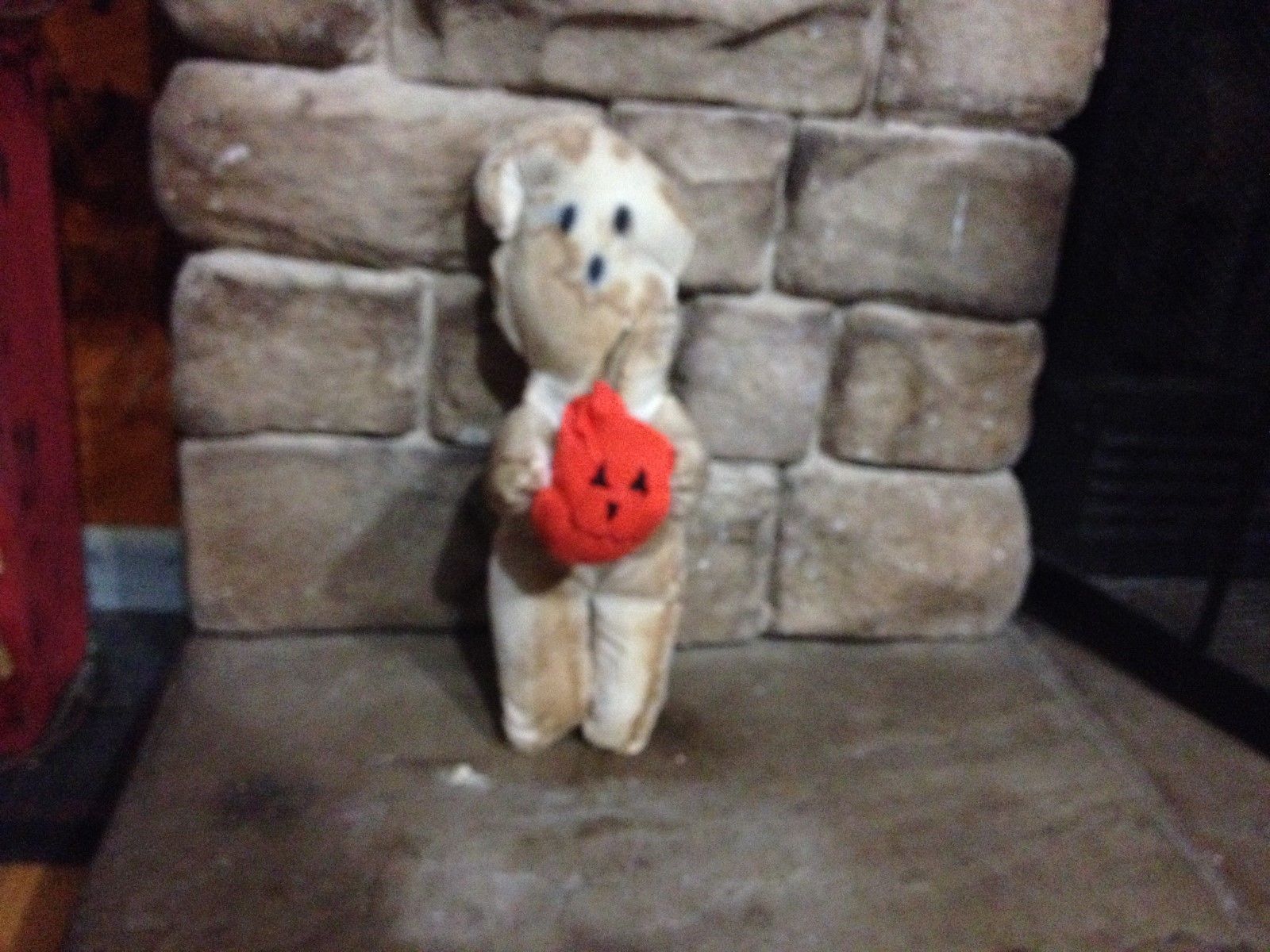 PRIMITIVE HALLOWEEN FALL GRUNGY GHOST DOLL WITH HIS JOL ORNIE SHELF SITTER DECOR