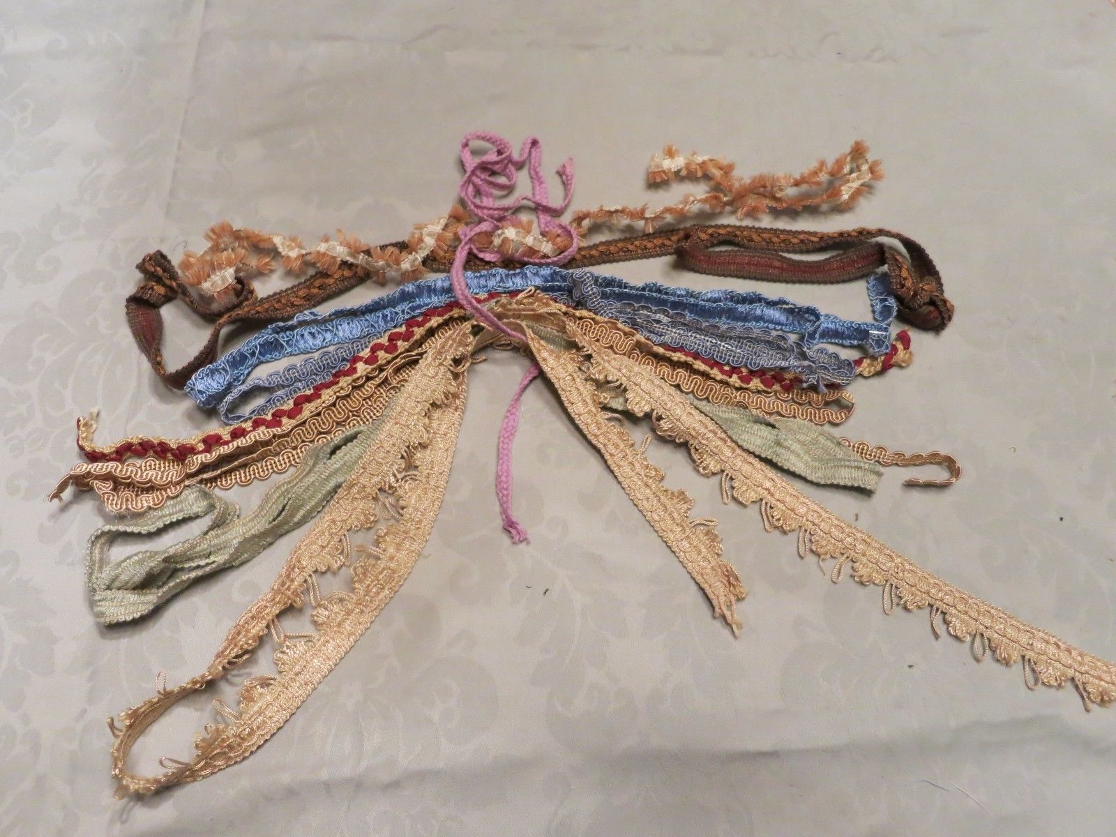 Title (ebay affiliate link): VGT.BITS AND PIECES BRAID GOLD GIMP STRAW COTTON TRIM CRAZY QUILT DOLL +LOT9
