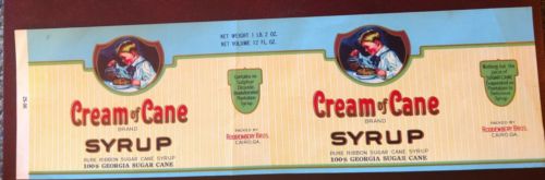 Title (ebay affiliate link): CREME OF CANE SYRUP CAN LABEL File Copy 1936 rare RODDENBERRY BROS CAIRO GEORGIA