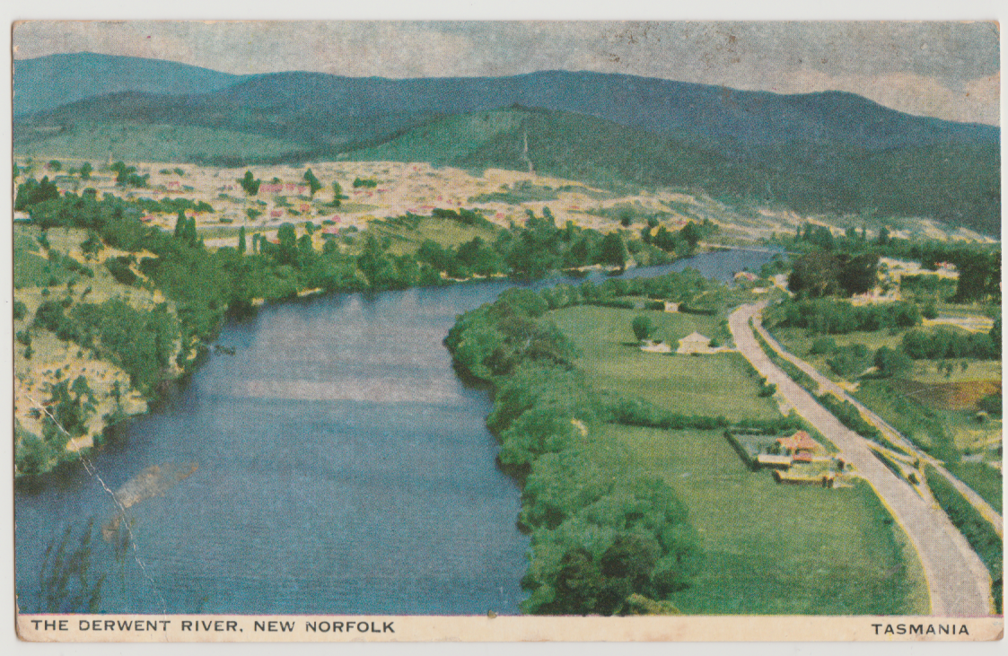Australia TASMANIA Derwent River NEW NORFOLK Sands Hurley postcard c1950s