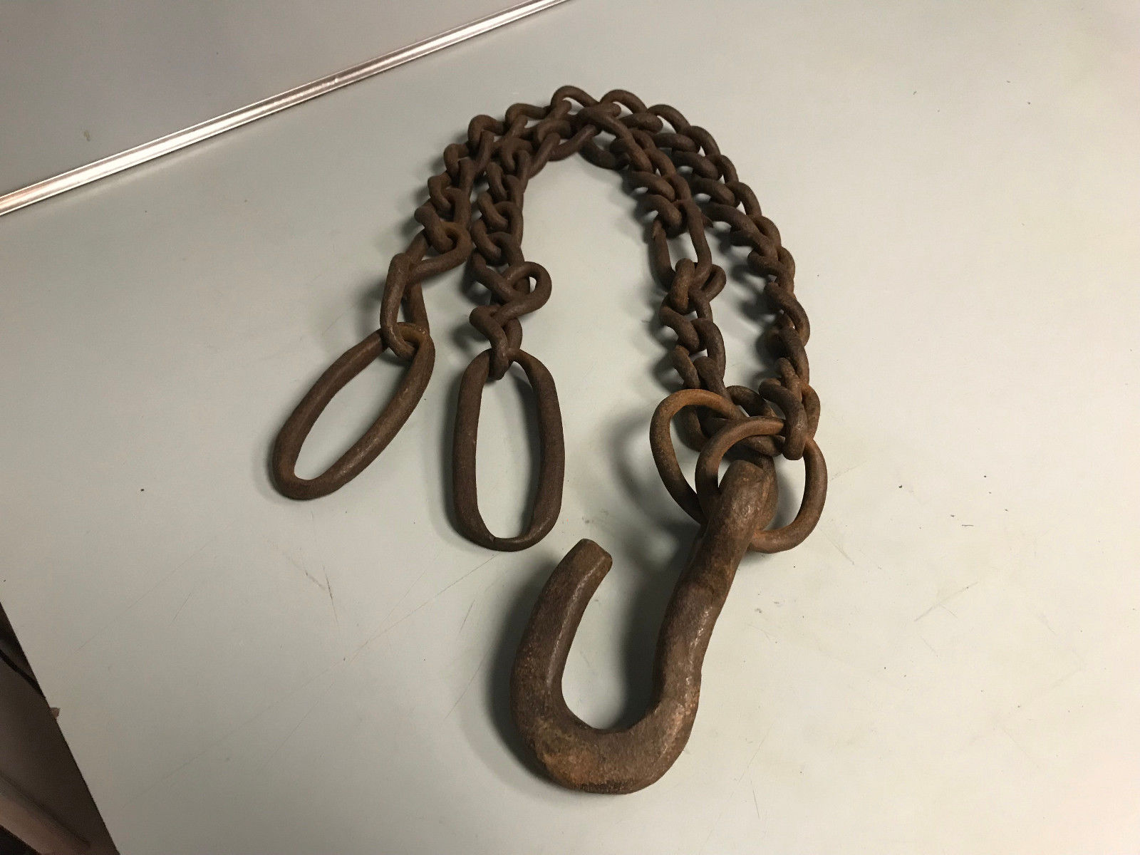 Antique Hand Forged Iron Chain & Hook