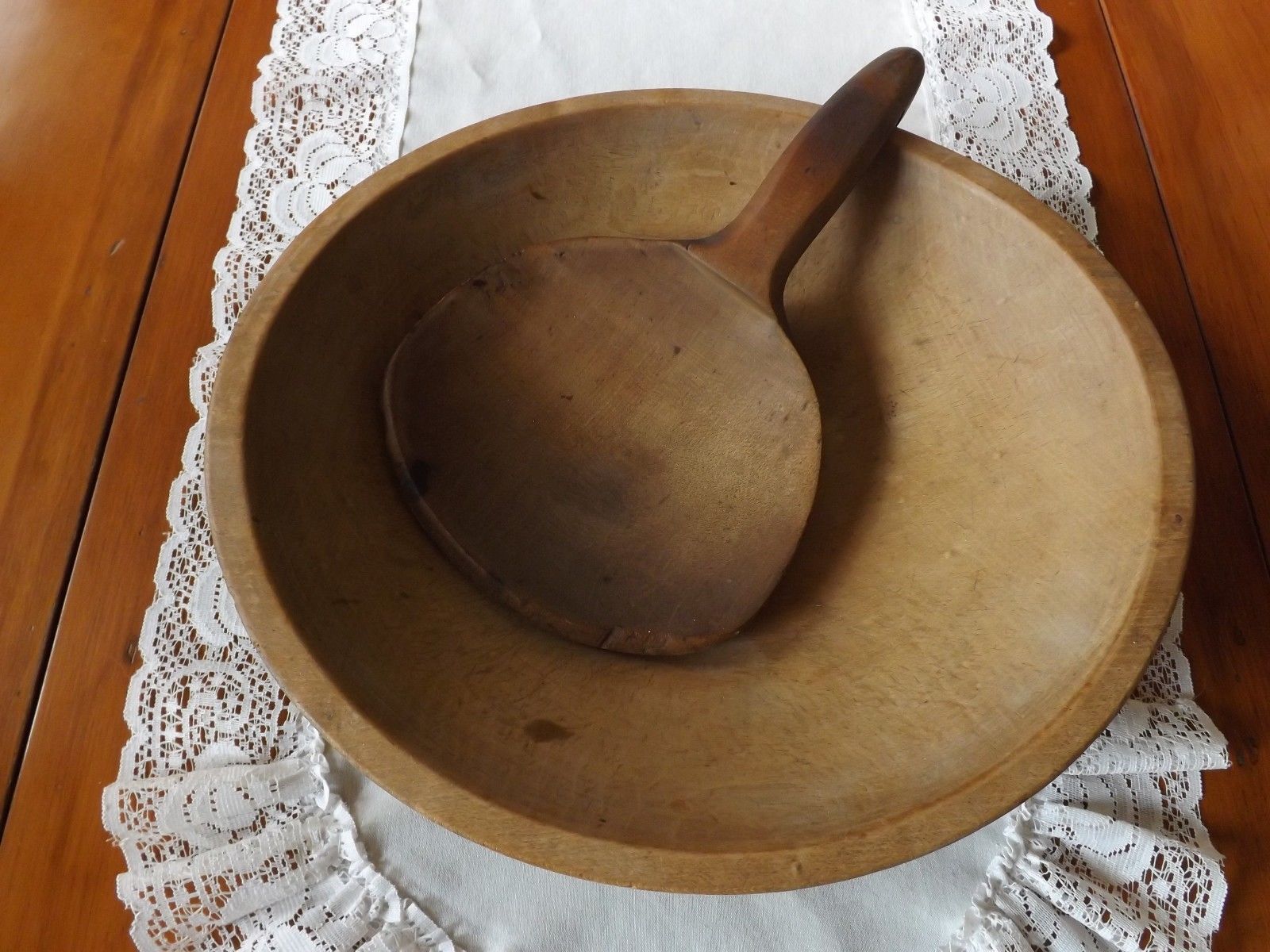 ANTIQUE WOODEN BUTTER BOWL AND PADDLE