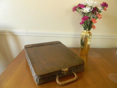 Title (ebay affiliate link): Antique Vintage Wood & Wicker Portable Lap Desk Document Box Case w Handle