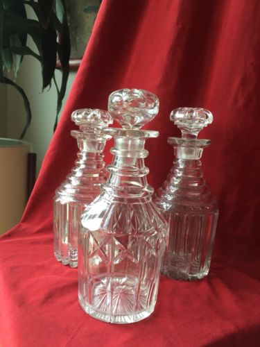 Set Of Three Anglo-Irish Regency Decanters And Stoppers Antique