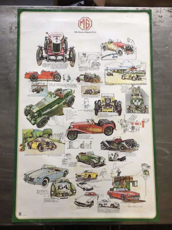 Title (ebay affiliate link): 1975 BRITISH LEYLAND ''MG 50 YEARS OF SPORTS CARS'' ARTWORK KEN DALLISON TC TD MGB
