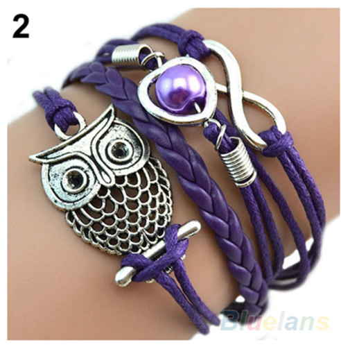 Infinity Owl Antique Silver Leather Charm Bracelet