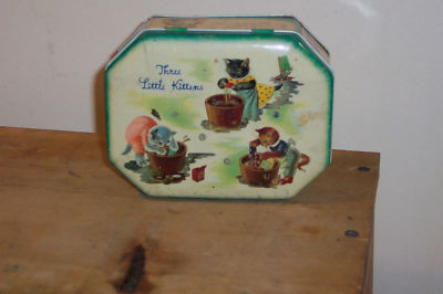 Vintage Three Little Kittens Tin 1940's Golden Books