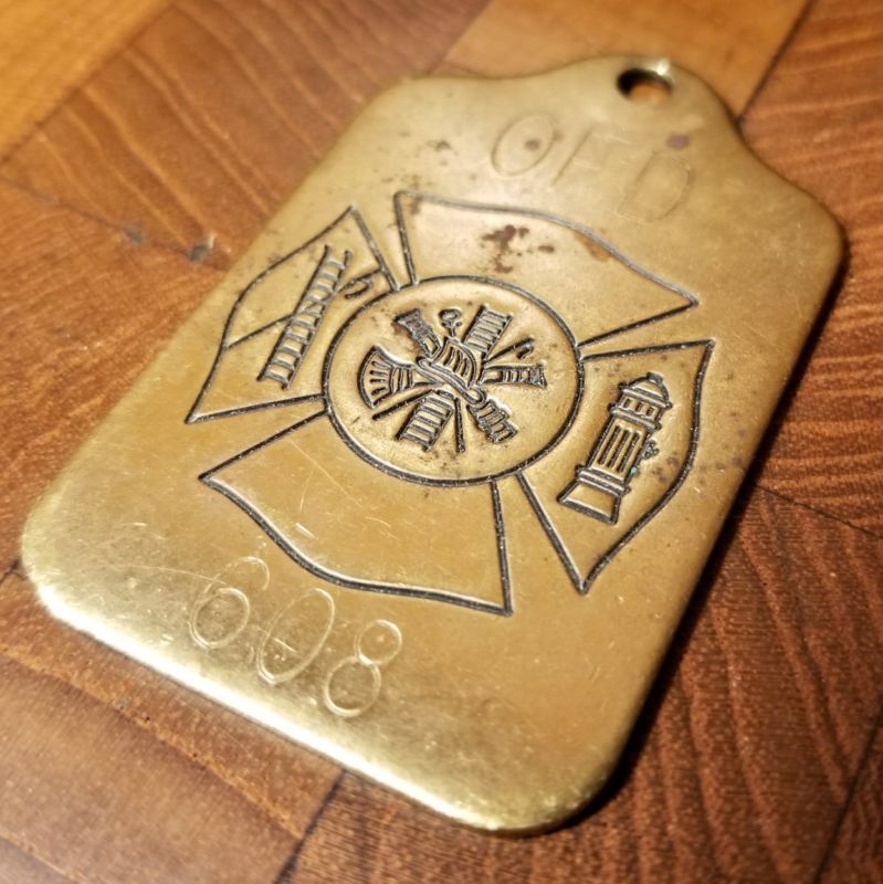 Vintage OFD Fire Department Solid Brass Keychain