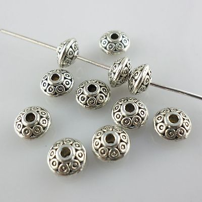 40pcs Antique Tibetan Silver 7*4mm Charm Spacers Beads Crafts Jewelry Making