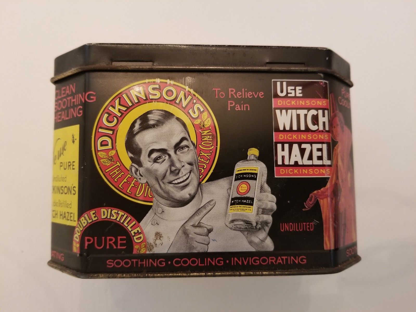 Title (ebay affiliate link): RARE Tin Vintage Dickinson Witch Hazel Hudson & Scott LTD Essex, Conn. Witchal