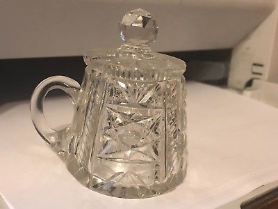 Title (ebay affiliate link): Antique Crystal Mustard Jar with Applied Handle in a Sun Pattern Unknown Maker