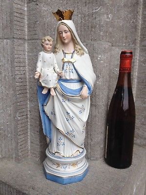 Title (ebay affiliate link): Big Antique French Bisque Porcelain Virgin Mary Madonna Child Baby Jesus Statue