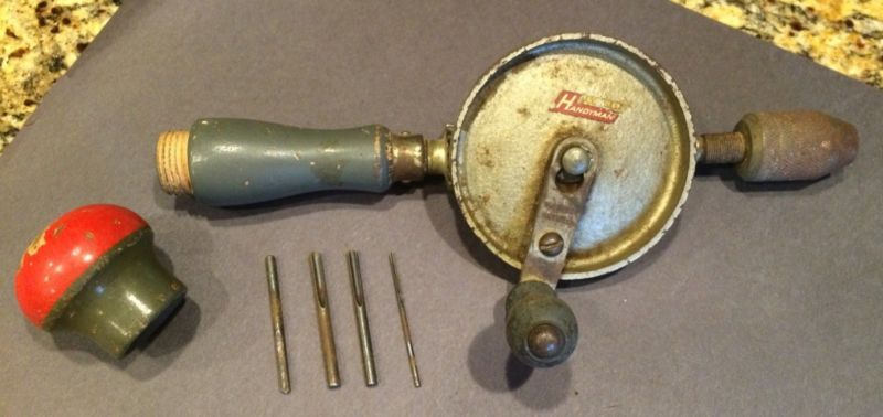 Title (ebay affiliate link): Vintage Stanley Handyman Egg Beater Hand Crank Drill with 4 original bits