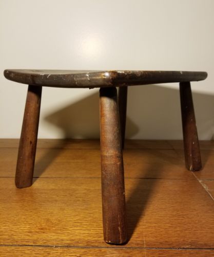 Title (ebay affiliate link): ANTIQUE Primitive Dark Wood Wooden Peg Foot Stool Early Furniture 10" x 15" x 11