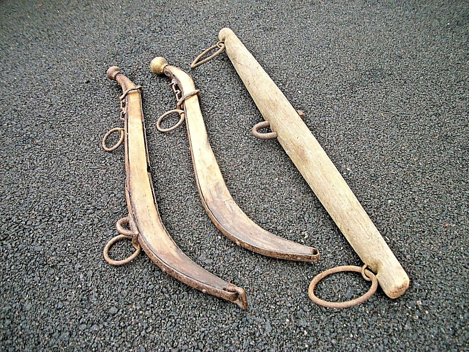 Title (ebay affiliate link): 3 Pcs Vintage Wood & Iron Horse Mule Oxen Harness Collar Yoke Primitive