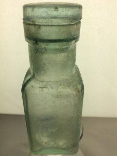 Early Antique Privy Dug Cure Drug Medicine Aqua Glass Bottle With Glass Stopper