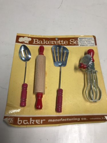 Title (ebay affiliate link): vintage child''s toy kitchen set bakerette rolling pin beater spoon spatula S2