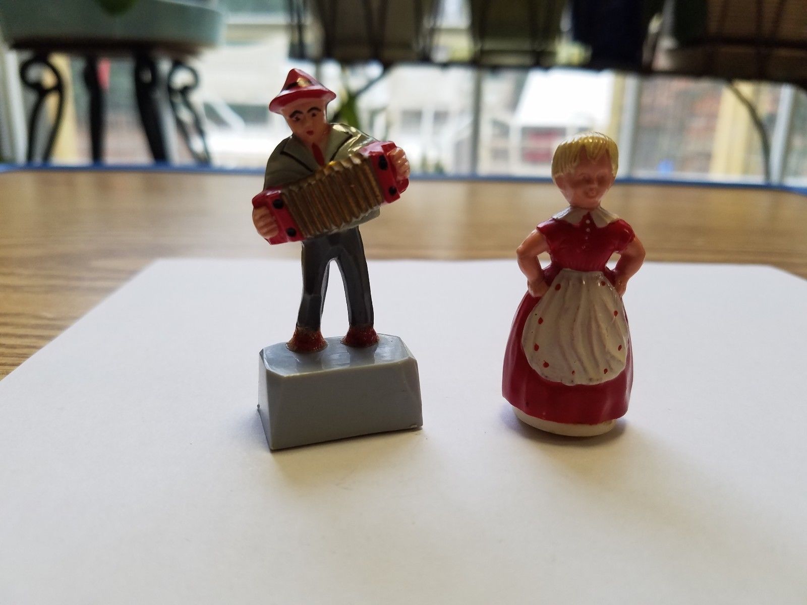 Title (ebay affiliate link): 2 Magneto plastic toy figures, man with accordian woman West Germany