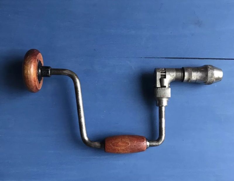 Title (ebay affiliate link): Vintage Worth Ratcheting Bit Brace Drill w/ Wood Handles Woodworking Hand Drill