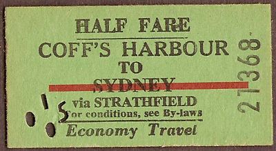 COFFS HARBOUR - SYDNEY NSW RAILWAY TICKET