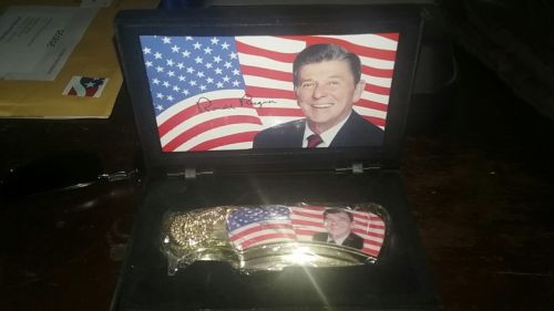 Title (ebay affiliate link): Knife Collector Edition Ronald Reagan Knife In Case with Flag Backdrop NEW