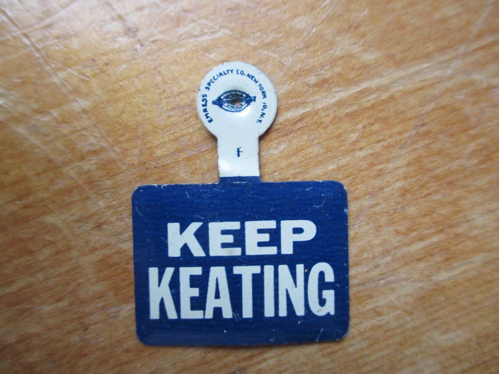 Vintage 1964 NY Senate Campaign Keep Keating Tab Pin Button GOP Candidate vs RFK