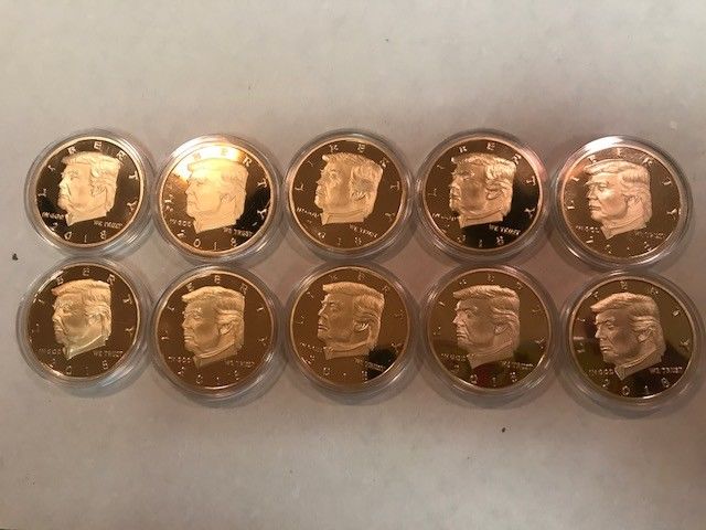 Title (ebay affiliate link): 2018 President Donald Trump Inaugural Gold EAGLE Novelty Coins Lot of 10