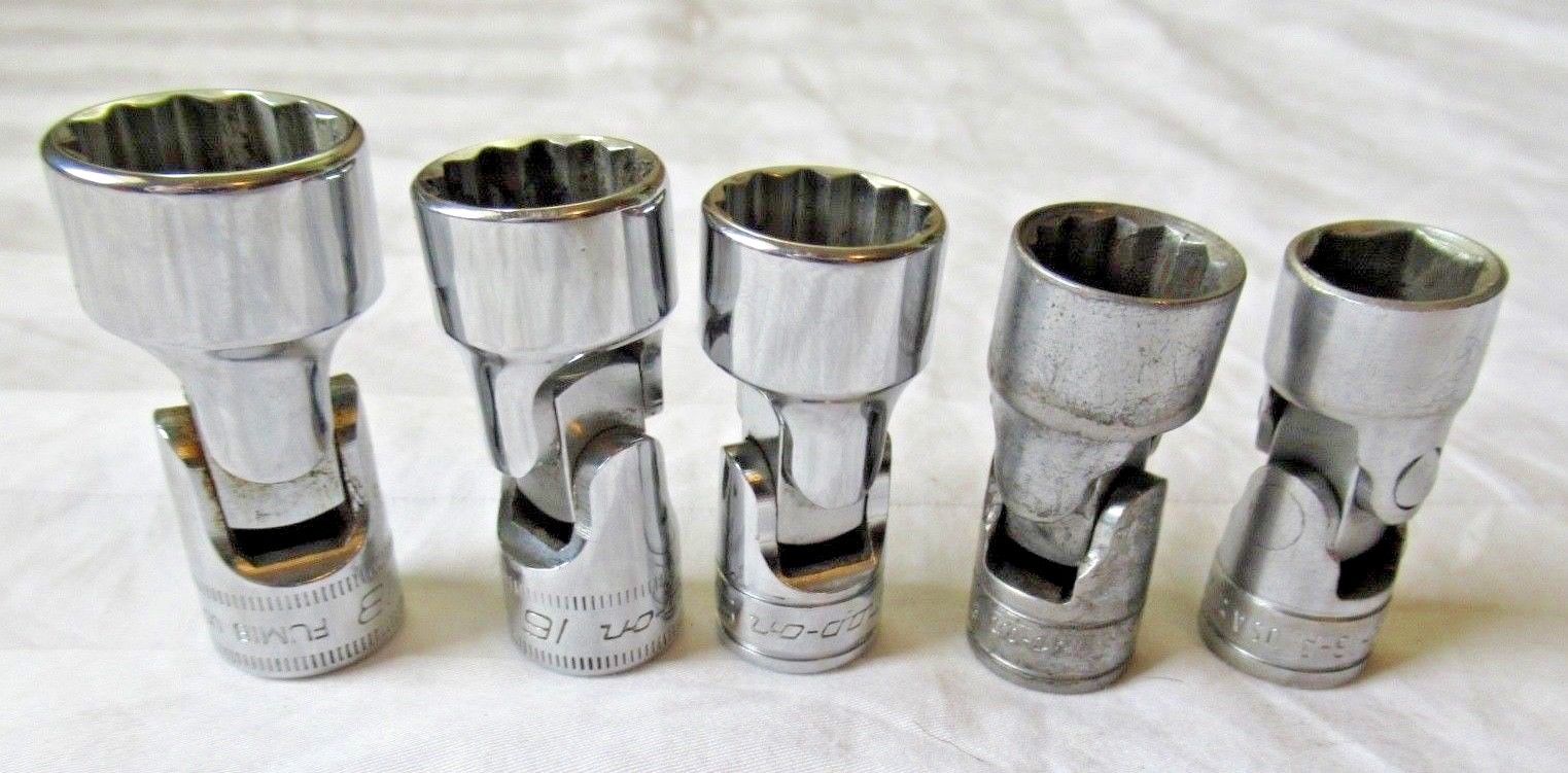 Snap-on Tools Lot of (5) 3/8" Drive Universal Swivel Sockets - Metric & SAE