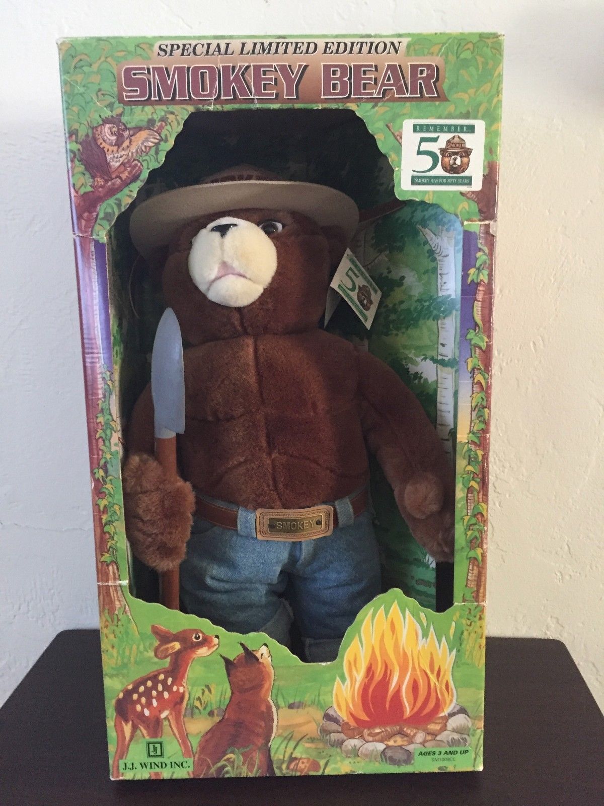 Title (ebay affiliate link): Smokey the Bear 50th Anniversary stuffed figure 23 inches tall in original box