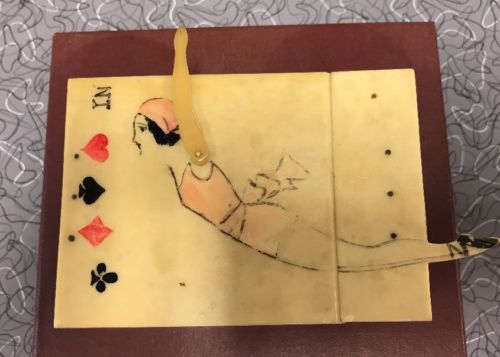 Vtg Art Deco Celluloid Deck Of Cards Holder With Girl Swimmer Hand Painted