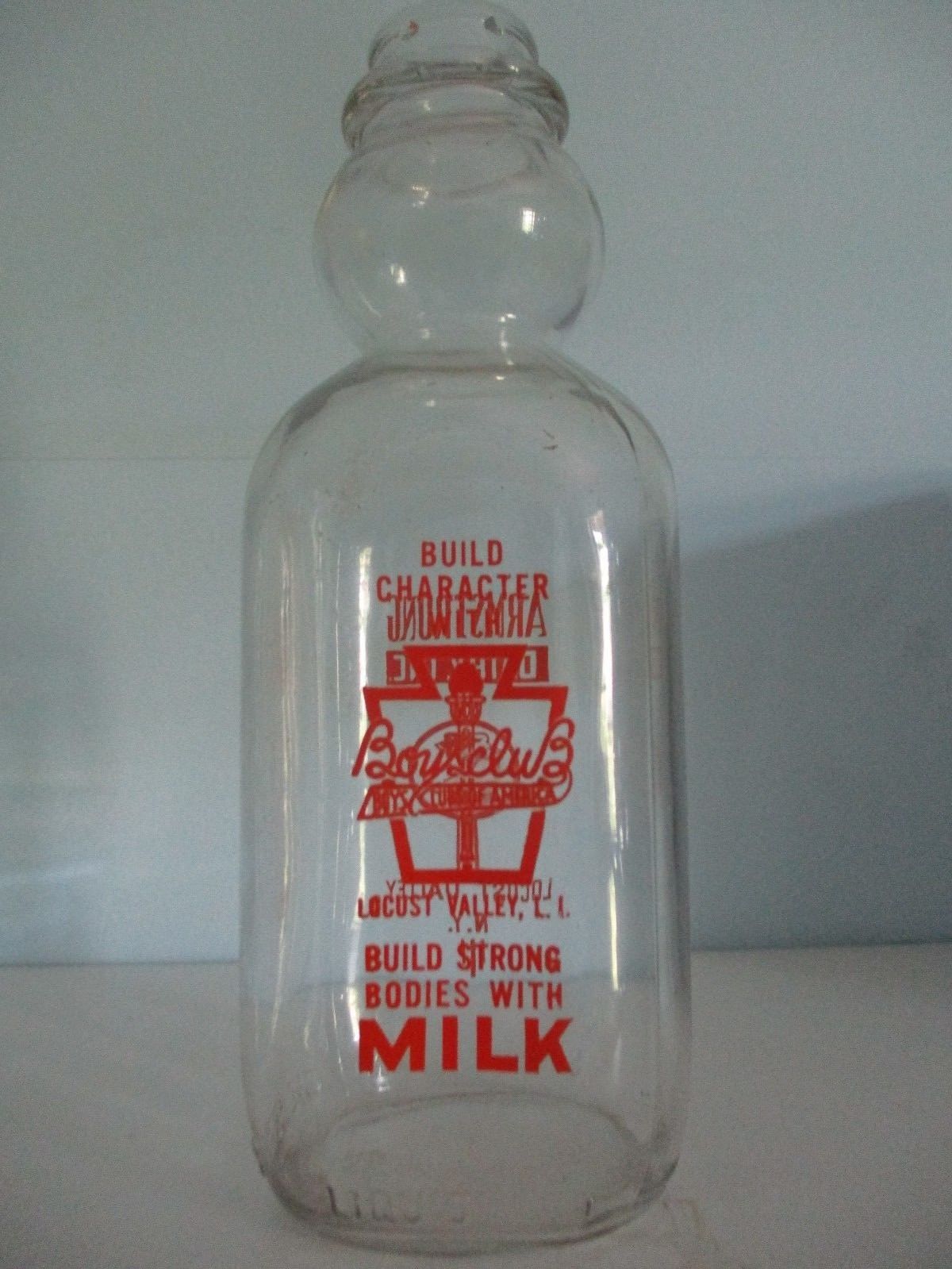 VINT Dairy milk Glass bottle ARMSTRONG L.I NY LOCUST VALLEY BOYS CLUB VERY RARE
