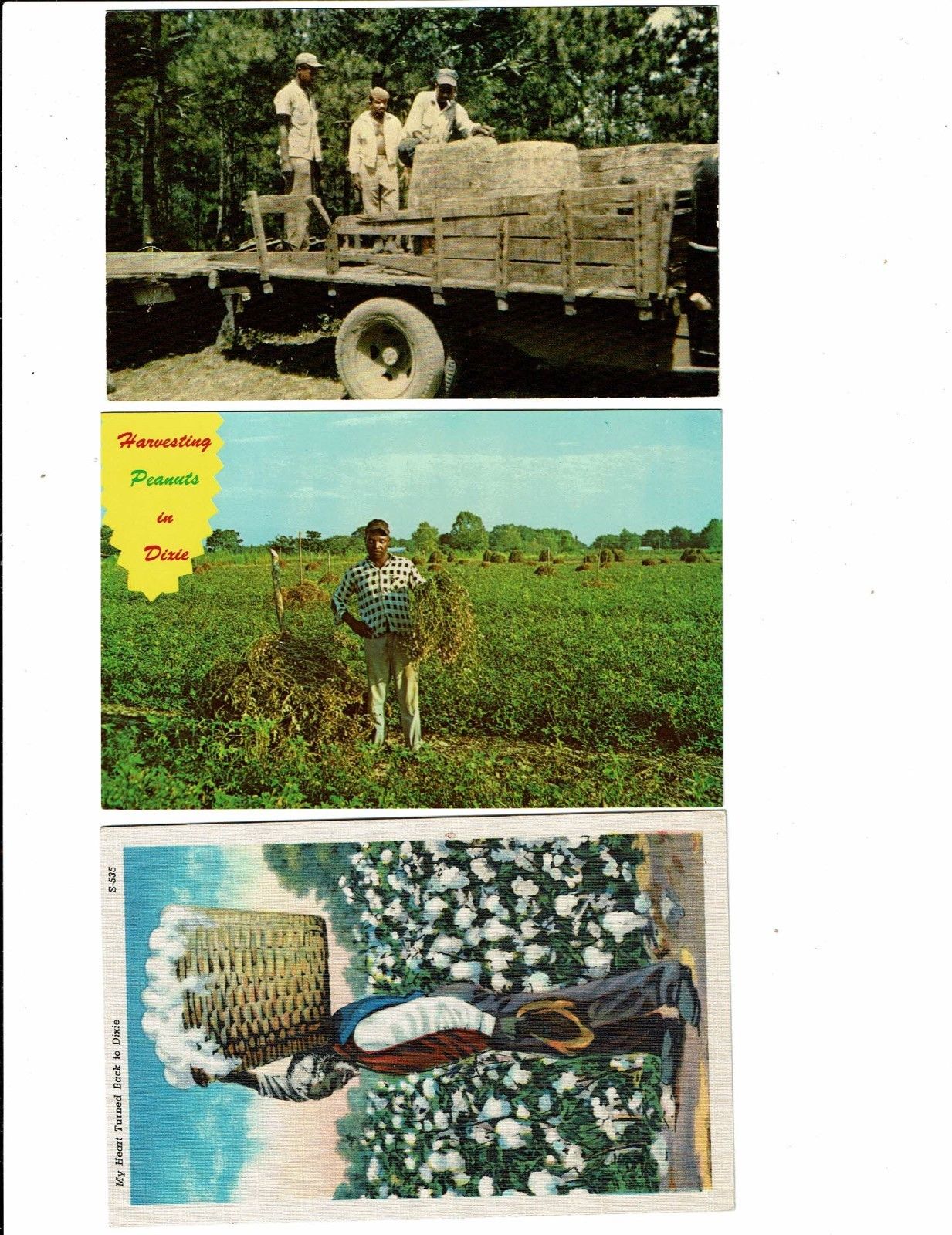 Title (ebay affiliate link): 3 Card Lot, Black Americana, Pick Peanuts, Load Pine Rosin, Black Man & Cotton!