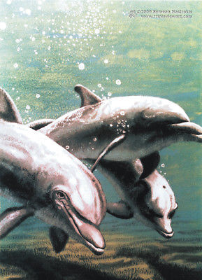 DOLPHINS SWIM Psychedelic Art UV Black Light Postcard Glow-In-The-Dark Neon Fluo