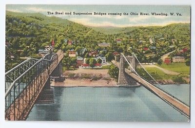 Title (ebay affiliate link): Vintage Postcard Steel and Suspension Bridges Ohio River, Wheeling WV NEVER USED