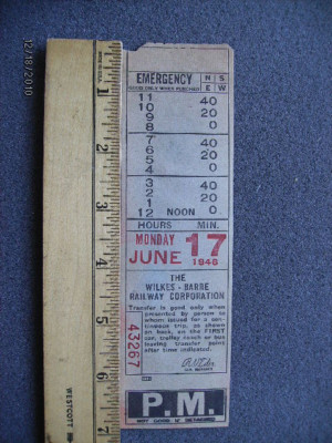 WILKES-BARRE RAILWAY CORP 1946 TICKET