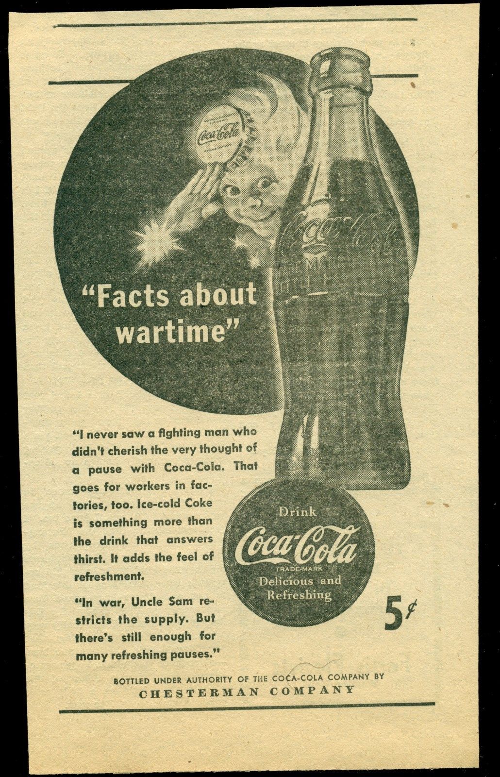 1942 WWII Scarce COCA-COLA ad Facts About Wartime Chesterman Co Iowa