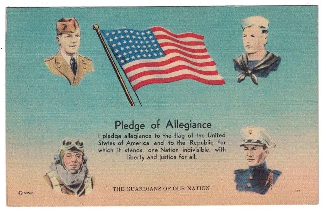 Title (ebay affiliate link): 1940''S WWII PLEDGE OF ALLEGIANCE GUARDIANS OF OUR NATION PATRIOTIC POSTCARD