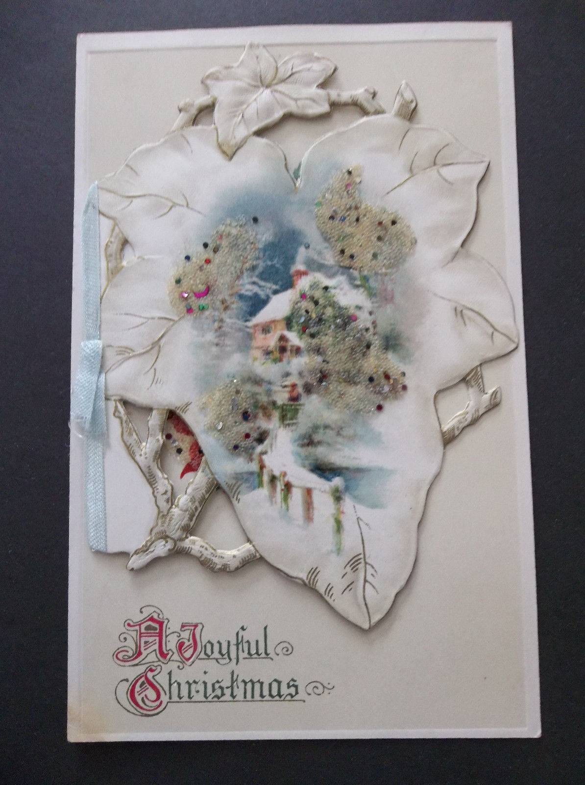 Vintage Christmas Post Card ~Unique Leaf Fold Outs ~LQQK~
