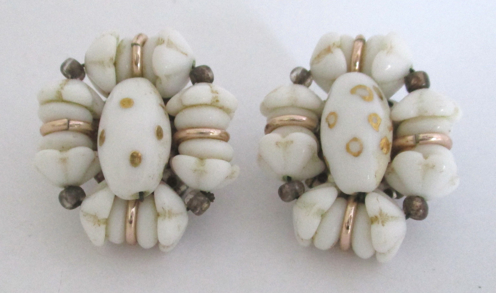 Vintage Milk Glass Bead Earrings West Germany